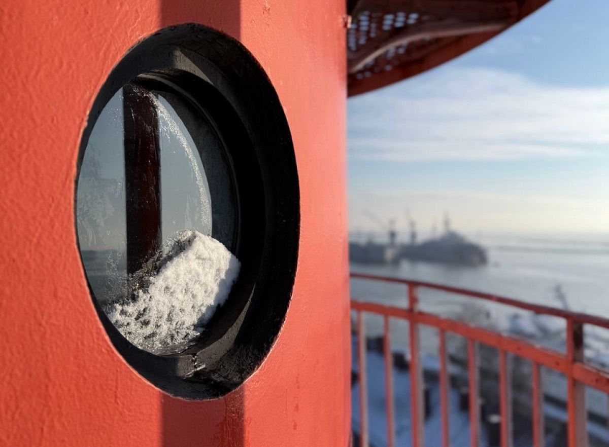 Преодолев 124 ступени, вы попадаете в святая святых — фонарное сооружение, а затем выходите на узкую наружную галерею-смотровую площадку, опоясывающую маяк.