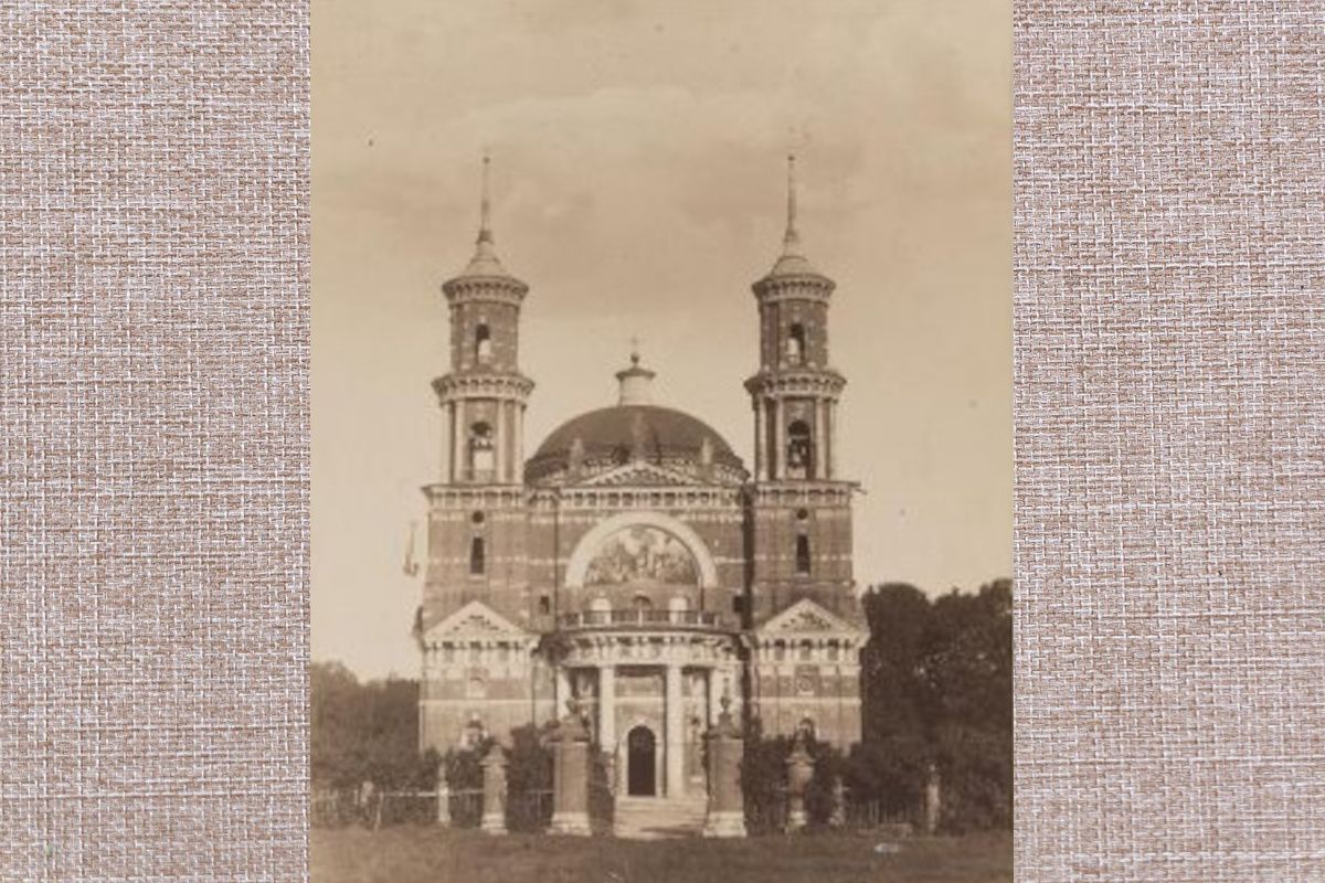 Церковь расположена чуть поодаль от дворца, как бы отделяя мирскую суету от вечности. Ощущение обособленности создавала кованая ограда на кирпичных столбах, увенчанных белокаменными вазами.