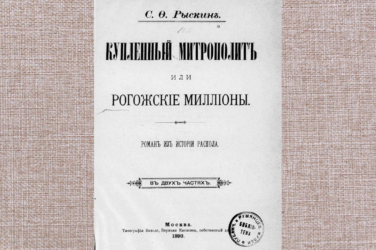 В 1893 году Рыскин издает роман «Купленный митрополит или Рогожские миллионы» — полное драматизма произведение об «изнанке» купеческой Москвы, о раскольниках староверах.