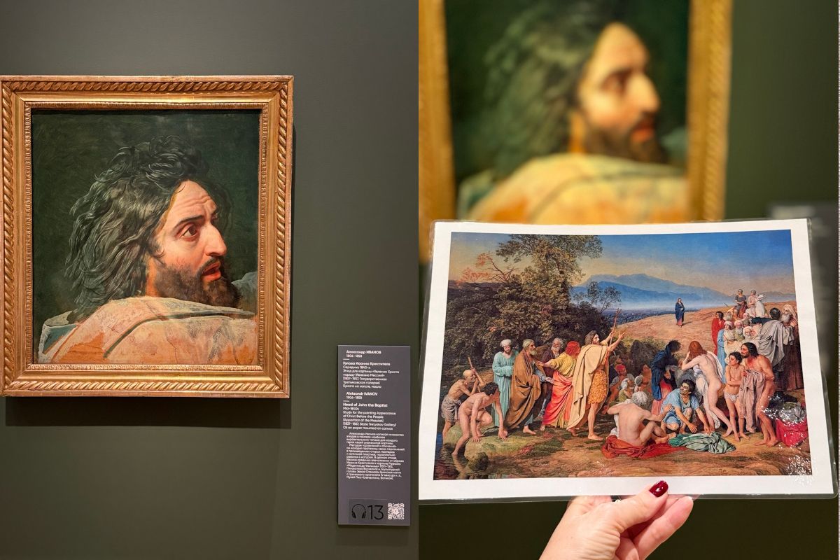 Александр Иванов — автор грандиозного полотна «Явление Христа народу», к которому было написано около 600 этюдов. На выставке можно увидеть два из них: «Вода и скалы» и выразительную «Голову Иоанна Крестителя». Это редчайшая возможность заглянуть в мастерскую великого мастера.